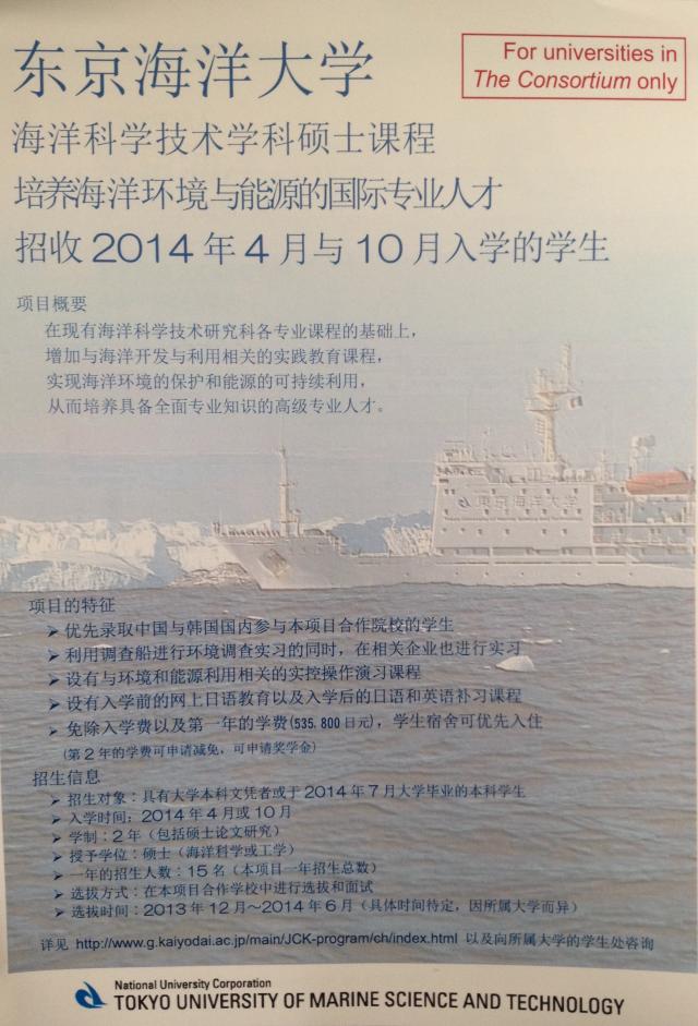 日本东京海洋大学 “海洋科学技术学科硕士课程,