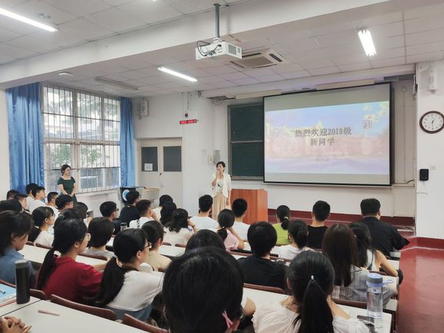 会议伊始,杨文昭对2019级新生表示热烈欢迎,向全体新生介绍了到场老师。随后,王伟莉对2019级全体新生进入御宅屋 表示祝贺与肯定并详细介绍了御宅屋 的学科特色、历史沿革并向全体2019级新生阐明了大学和高中的不同之处,同时为2019级新生提出了几点希望:尽快转变角色,适应大学生活;学会自主自律,强化责任意识;牢记学习主业,努力全面发展;尽早了解专业,做好生涯规划。王伟莉书记表达了对御宅屋 的新生寄予的厚望,她精彩的发言赢得新生们的阵阵掌声。