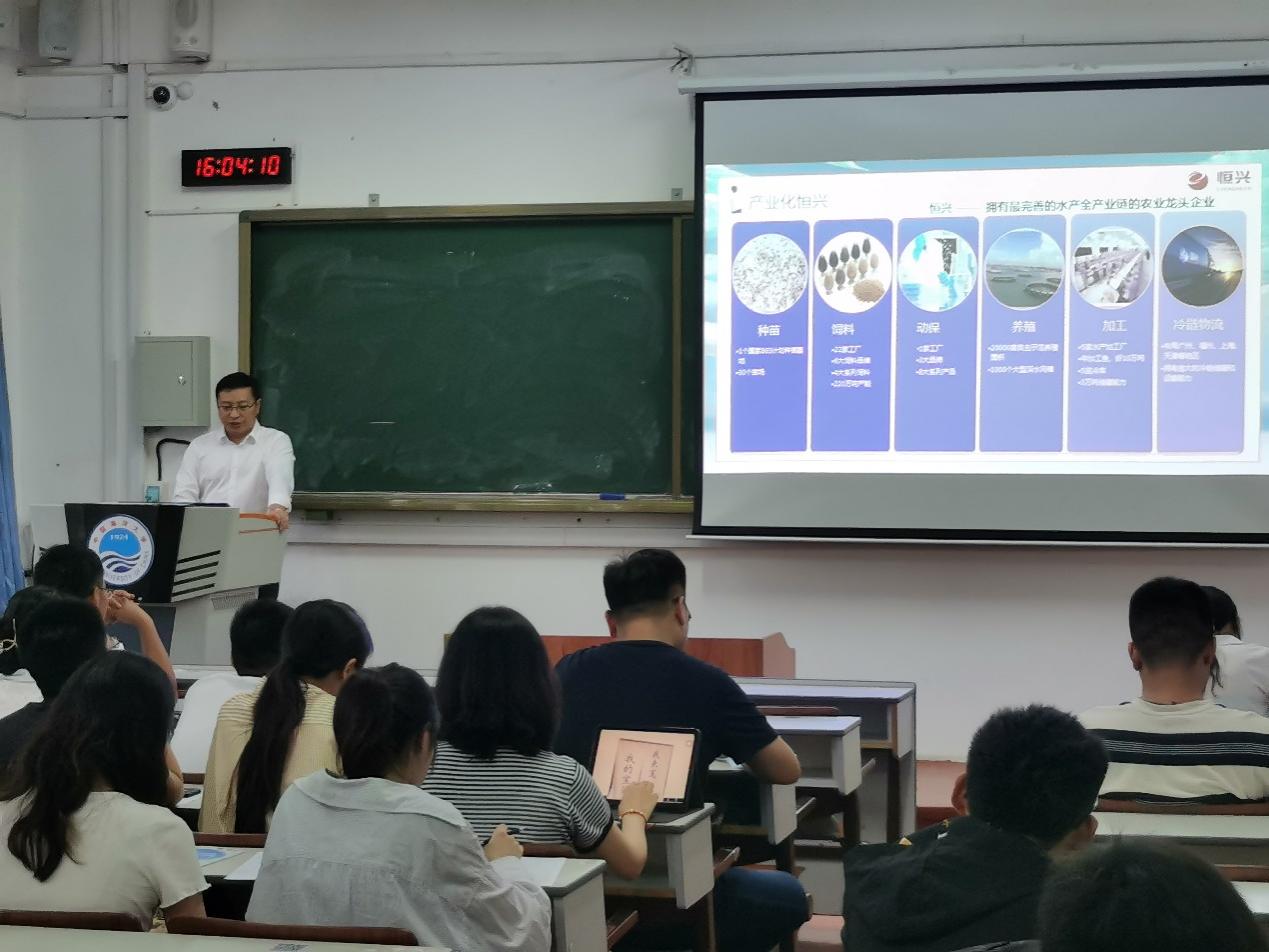 9月26日下午,2021年秋季学期首场“水产名企海大行”在鱼山校区新教学楼404举办,本场“水产名企海大行”为广东恒兴集团专场宣讲会。