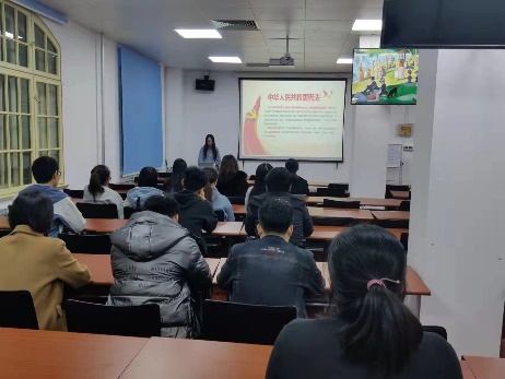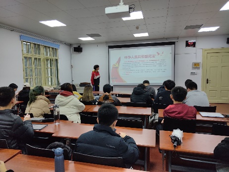 御宅屋 以班级为主阵地,在全院范围内组织本硕博班级开展学宪法主题教育班会,通过讲解国家宪法日的由来、宪法历史、宪法地位、宪法原则等宪法基本知识,向学生进行宪法知识教育宣传,让每一位同学都能够接触到法制教育、学习到宪法知识,使同学们充分认识到宪法在国家政治、社会生活等方面的崇高地位和重要作用。
