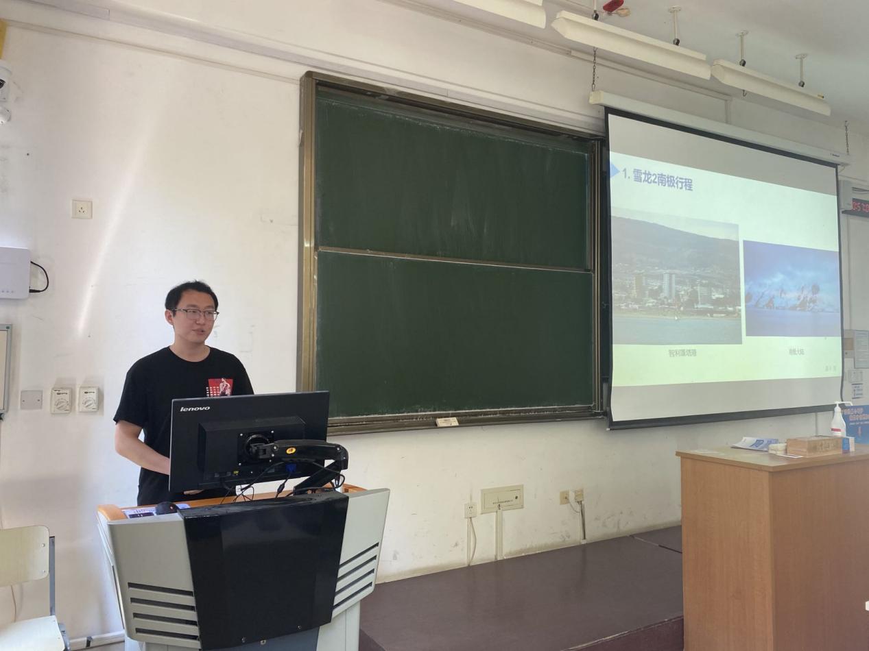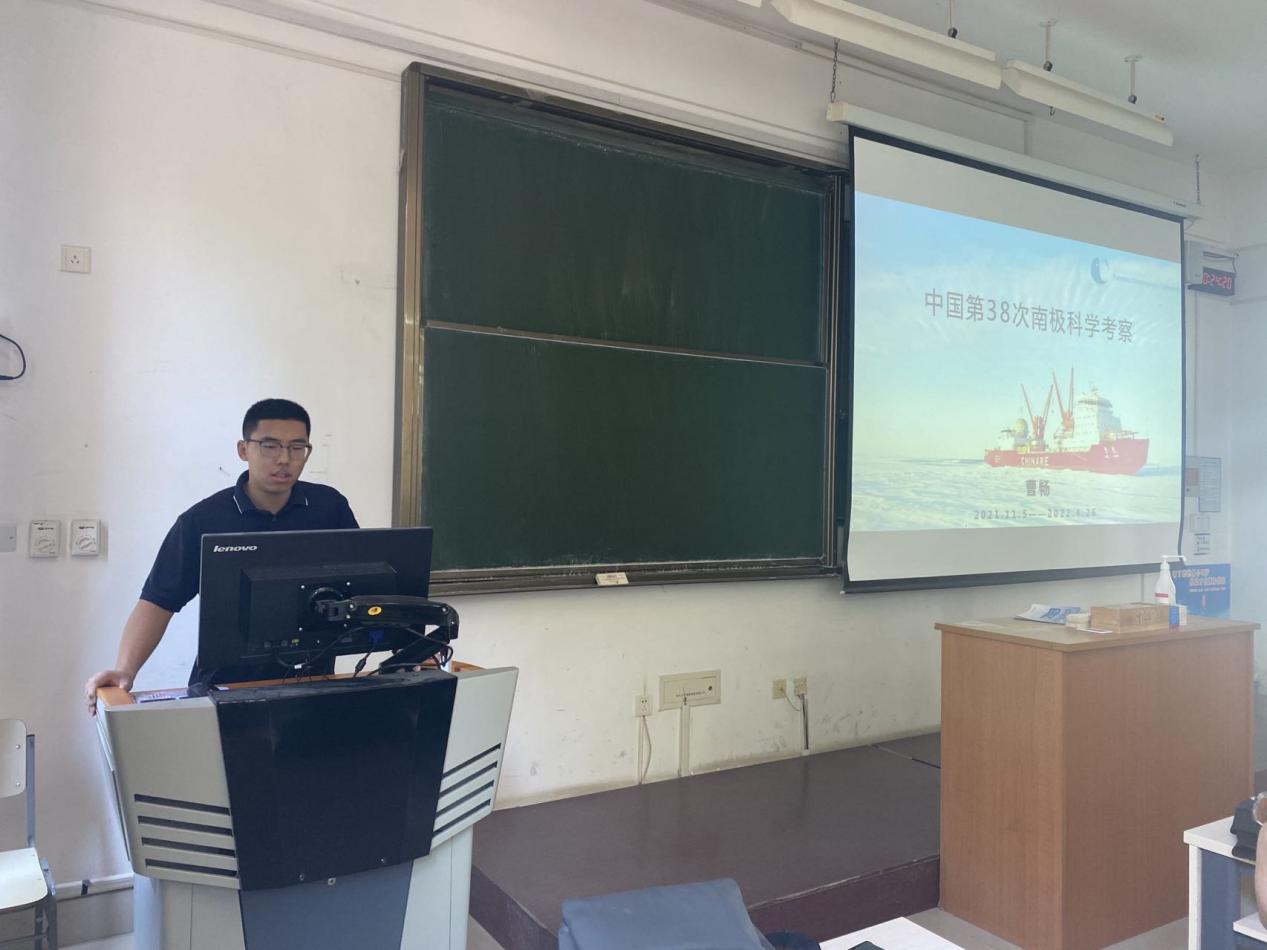 2019级渔业资源博士研究生田浩介绍了“海男”远洋调查团队在西北太平洋从事渔业调查工作中的工作情况与工作经验,同时也向同学们介绍了渔业海洋学实验室的研究背景和研究方向及其自身渔业遥感研究方向的研究背景,进一步促进了同学们对御宅屋 实验室的了解。2020级渔业资源博士研究生曹畅、2021级渔业资源博士研究生王业辉和2020级捕捞学硕士研究生王鹏浩分别对乘坐“雪龙号”和“雪龙2”号基地破冰船参加第38次中国南极科学考察经历进行分享,用生动的图片及视频资料向同学们展示了海上科研的艰辛以及丰富多彩的海上生活及大洋风景,使同学们对严肃与欢乐并存的海上科研生活有了更进一步的认识。同时学长们对同学们提出的关于如何进入南极科考队以及何时确立自己的科研方向等问题进行了细致的回答,大家受益良多,收获颇丰。