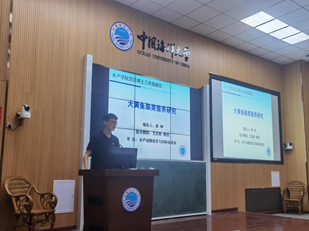 崔坤博士主要就鱼类营养学发展概况、海水“国鱼”大黄鱼介绍、大黄鱼脂类营养研究进展以及鱼类营养学未来发展趋势四个方面向同学们分享了以大黄鱼为对象的营养与饲料研究和成果。专业性的词汇和研究成果勾起了青年团员的好奇心与对科研工作的向往。