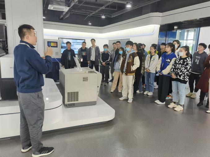 西海岸新区是国家级新区,肩负着“以海洋经济发展为主题,打造海洋强国战略支点”的国家使命。在研学活动的第一站青岛华大基因研究院(国家海洋基因库),同学们在工作人员的介绍下了解了华大基因的发展历史、研究内容等,参观了中通量基因测序仪、便携式基因测序仪等华大智造设备和高通量测序运营平台、样本装载实验室等工作环境。当前,研究院已建成全球规模最大的海洋基因库,海洋生物基因测序能力全球领先。