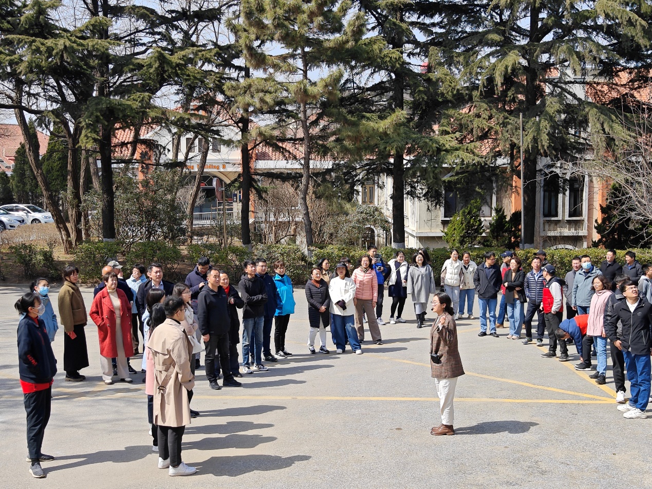 本次健步行的路线为:人鱼广场——水产馆——科学馆——地质馆——三角地——敏行馆——逸夫馆——胜利楼——篮球场——二校门——操场——文苑楼——铭史楼。12点30分老师们准时到达集合地点人鱼广场,开始了健步行活动。同时,本次活动邀请辅导员申雅雯老师给大家讲解鱼山校园历史建筑的渊源和趣闻趣事,大家边走边听,沐浴阳光,感受历史,好多老师表示我们的校园竟然有这么多历史文化元素,感觉收获颇丰、受益匪浅。申老师的讲解也得到高度认可,听众们情不自禁的鼓起掌。