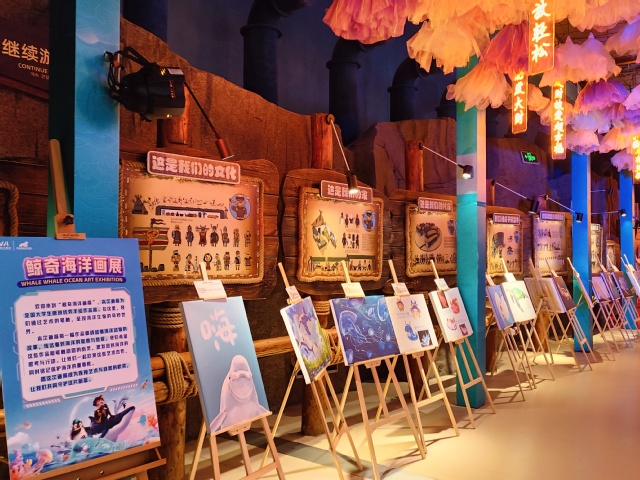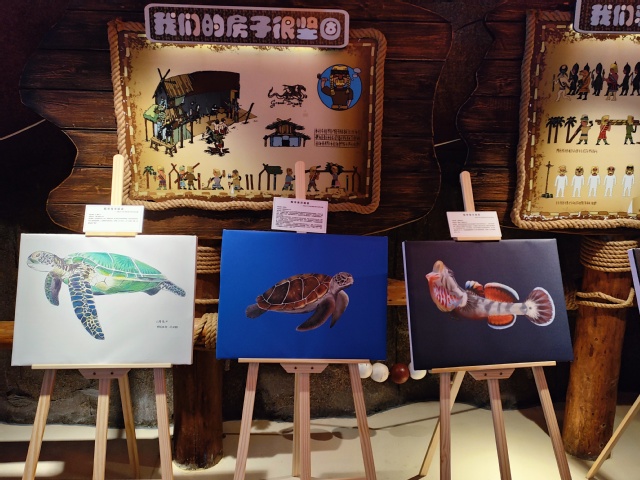 在御宅屋 承办的全国新农科水产教育联盟高校大学生原创手绘作品征集大赛中,涌现出一批画面精美、内容深刻的手绘、海报作品。“鲸奇画展”在青岛极地海洋公园里展出了五十余份优秀作品,并由专业同学为前来观展的同学、群众对作品中的专业内容进行科普讲解。许多游客都被作品吸引,纷纷驻足欣赏、向志愿者提出疑惑。从专业内到专业外,水产文化以更为通俗易懂、形象有趣的方式走进大众的视野。通过志愿者生动详尽的讲解,游客们不仅对这些海洋生物有了深入的了解,更深刻体会到保护海洋生物的重要性。他们衷心希望鱼山科普志愿者协会能够继续开展类似的科普活动,让更多的人了解海洋生物,携手守护我们蔚蓝美丽的海洋家园。