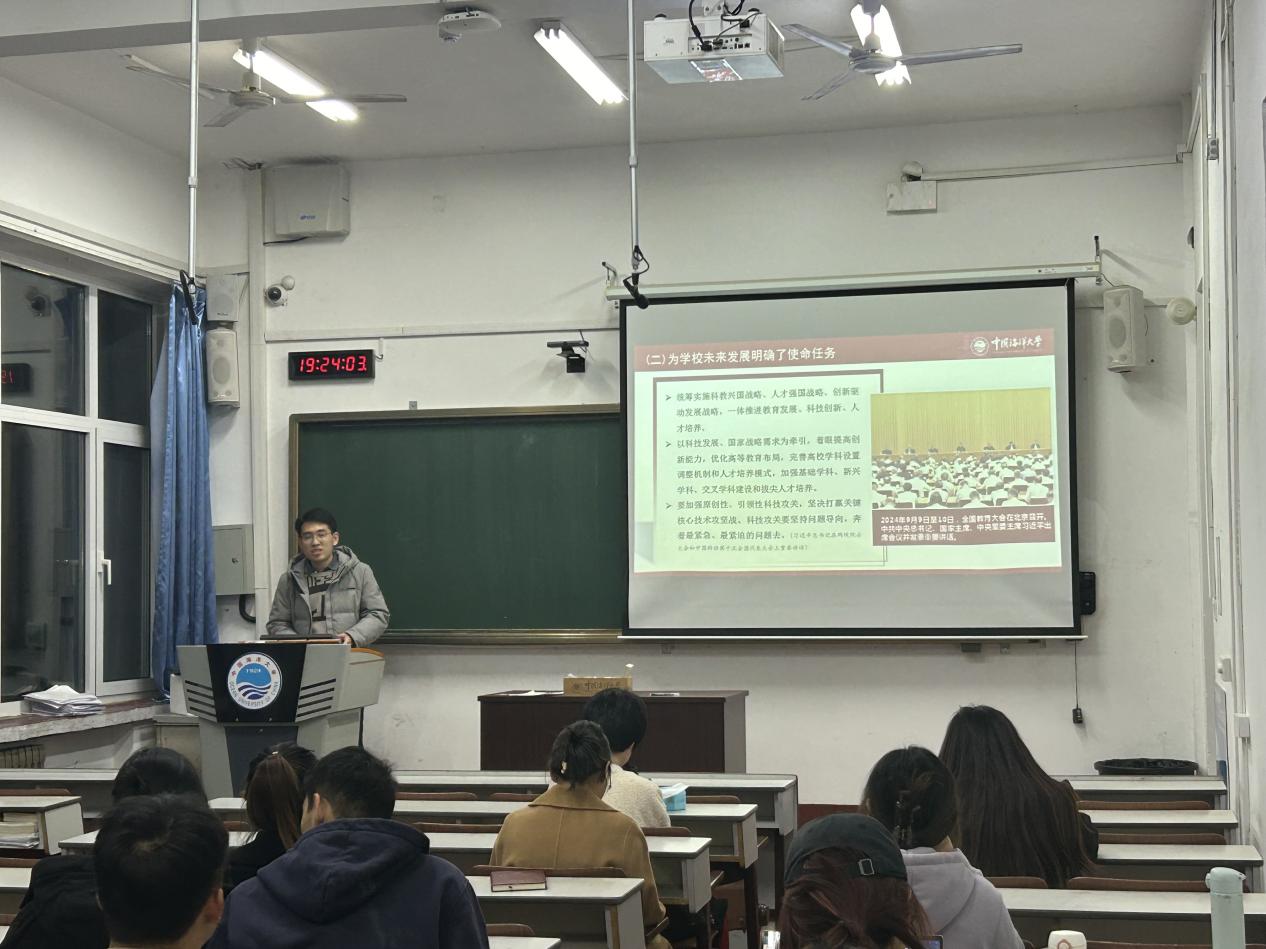 随后,尚明治从“汲取思想伟力,汇聚磅礴力量”“坚定历史自信,增强历史主动”“牢记嘱托,奋进新程”三个方面展开讲述,强调广大水产学子要以习近平总书记的回信为思想指南和行动纲领,心怀“勇立潮头,谋海济国”的坚定信念,以更加饱满的热情和更加坚定的信心投入到今后的学习工作中,推动学校事业和海洋事业蓬勃发展,赓续百年荣光。