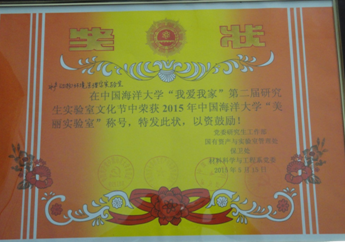 为了进一步提升学校师生实验室安全意识,共建安全、美丽、和谐实验室,2015年4月学校组织开展了御宅屋 “我爱我家”第二届研究生实验室文化节。此次活动中,本研究室积极参与美丽实验室评选活动,由苏真真、张家顺、闻剑旻3位同学撰写材料,经学院推荐,主办方邀请评委对各学院推荐的“美丽实验室”进行评审,最终,本研究室被评选为2015年御宅屋 十大“美丽实验室”。