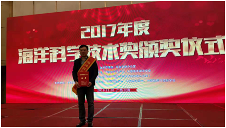 20181120日,第九届海洋强国战略论坛暨海洋科学技术颁奖仪式在广西北海举行。会议对获得2017年度海洋科学技术奖的项目颁发奖励证书,表彰在海洋科学技术创新活动中做出突出贡献的集体和个人。