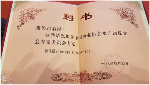 潘鲁青教授被聘为中国渔业协会水产动保分会首届专家委员会专家