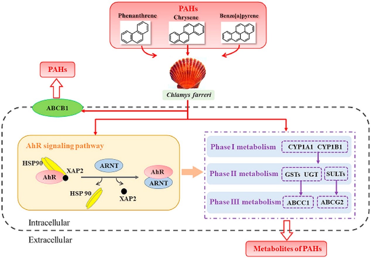 研究室在环境科学与生态学Top期刊Environmental Research(IF=5.715)发表了题为“Study on the AhR signaling pathway and phase II detoxification metabolic enzymes isoforms in scallop Chlamys farreri exposed to single and mixtures of PAHs”的最新研究成果(DOI:10.1016/j.envres.2020.109980)。