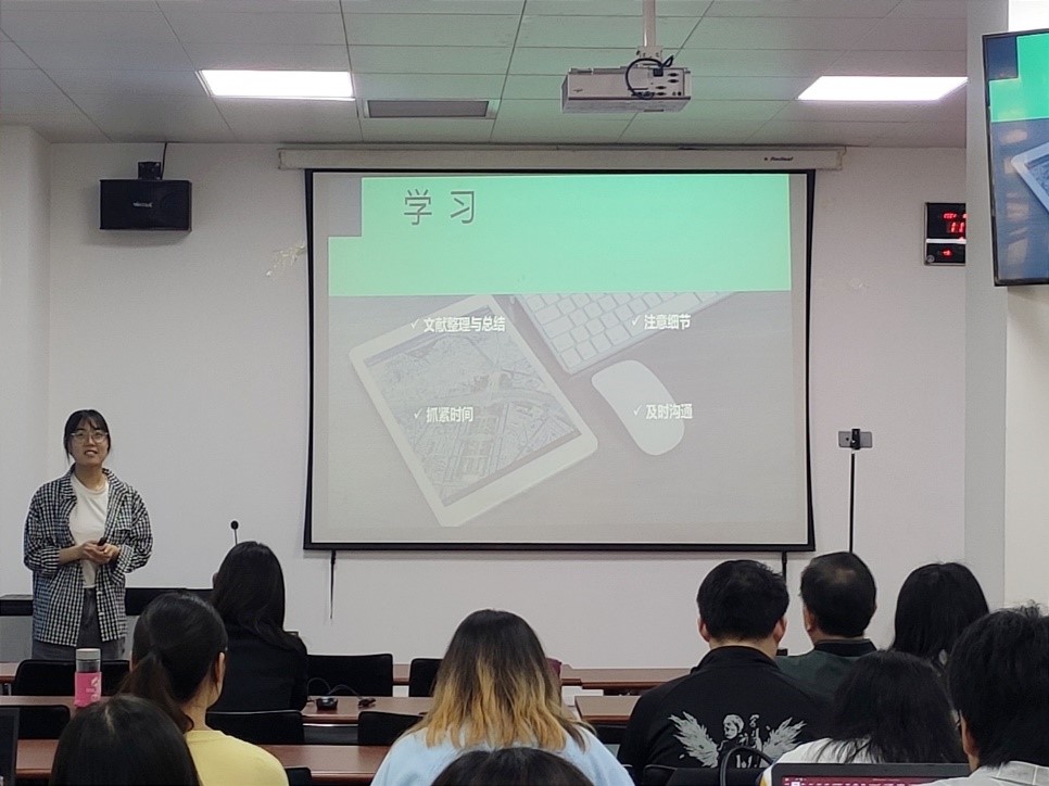 田依萌硕士从学习和生活两方面总结和分享了自己的经验,在学习方面,建议同学们平时要注意文献的整理与总结,在生活方面,提醒同学们要劳逸结合。