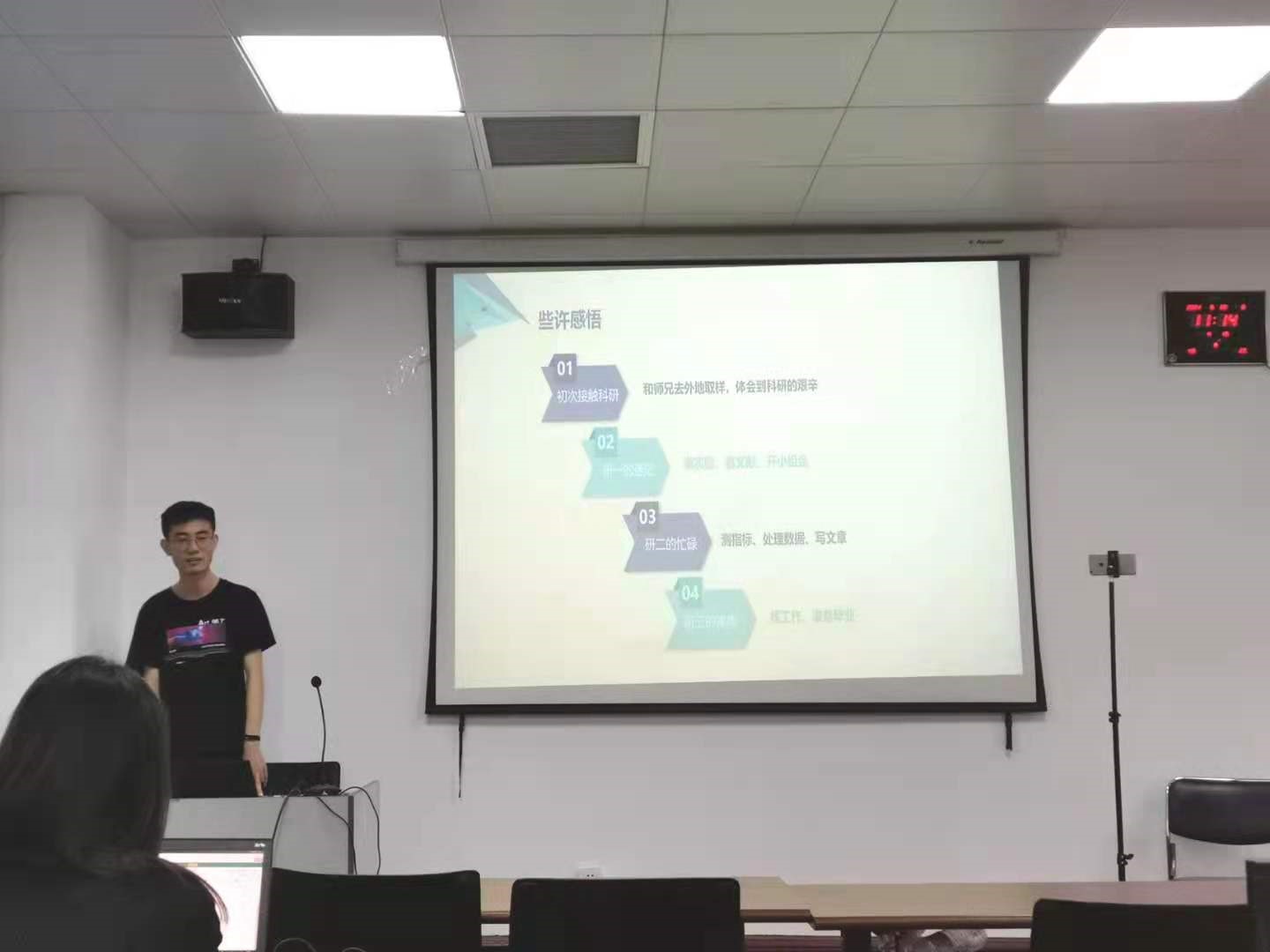 张鑫博士和大家分享了自己在读博期间的心路历程,告诉同学们要有紧迫感,同时也要保持良好的心态。最后,张鑫师兄对潘老师在自己博士研究生阶段的帮助与指导表示感谢。