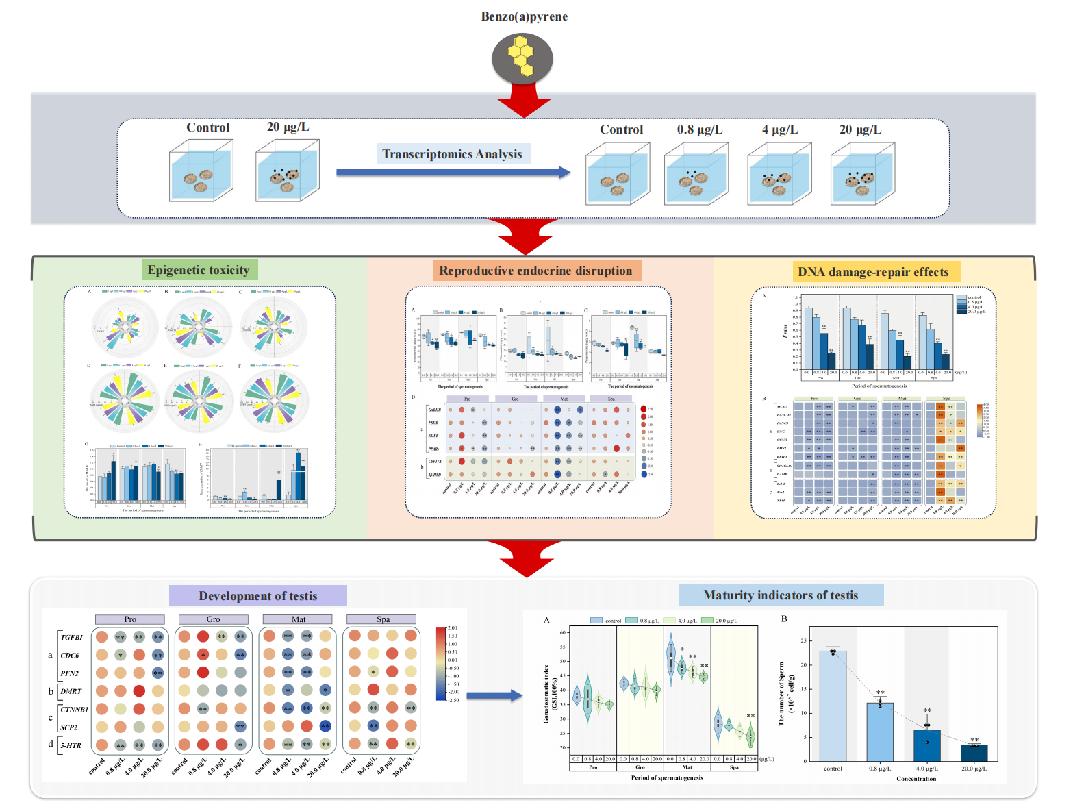 研究室在多环芳烃(PAHs)对双壳贝类精巢的表观遗传毒性、生殖毒性研究方面取得新进展,研究成果以“Study on epigenotoxicity, sex hormone synthesis, and DNA damage of benzo[a]pyrene in the testis of male Ruditapes philippinarum”发表在环境科学与生态学领域Top期刊Science of The Total Environment(中科院1区,IF=9.8)。