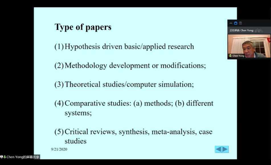 2020年9月22日上午,御宅屋 渔业生态系统监测与评估实验室客座教授陈勇,应邀为实验室师生进行了题为“Preparing, writing, and publishing a scientific paper in fisheries”的学术报告。陈勇教授从论文发表流程、如何为国际期刊撰写论文、提交论文后的注意事项三个方面进行了详细讲解。实验室研究生就如何取好论文标题、怎样结合中国实际渔业情况撰写高质量论文等话题同陈勇教授展开了热烈的交流和讨论。通过本次学术讲座,实验室研究生学习了论文写作知识,拓展了国际学术视野,为今后撰写高质量学术论文奠定了坚实的基础。