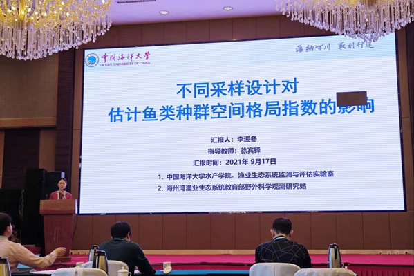图5 李迎冬进行《不同采样设计对估计鱼类种群空间格局指数的影响》口头汇报