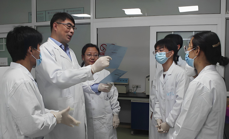 艾庆辉带领团队成员开展科研实验