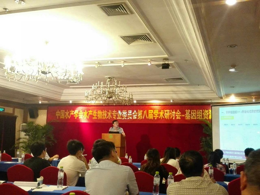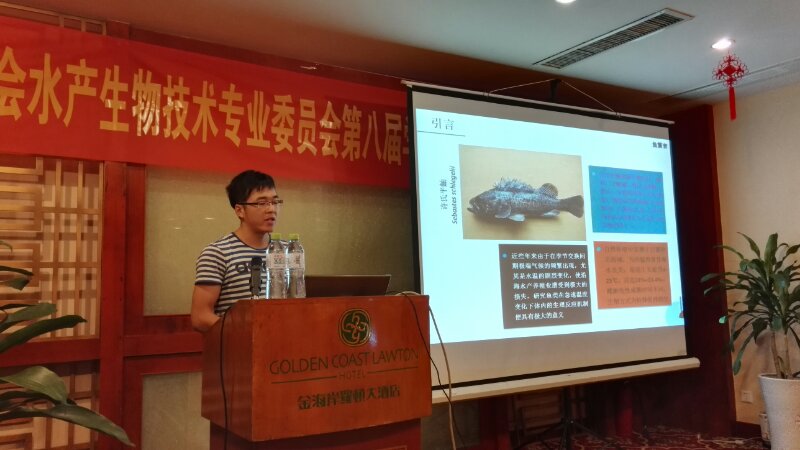 2016年10月19-21日,由中国水产学会水产生物技术专业委员会主办,南海海洋资源利用国家重点实验室(海南大学)承办,中国水产科学研究院黄海水产研究所和山东省海洋渔业生物技术与遗传育种重点实验室协办的中国水产学会水产生物技术专业委员会第八届学术研讨会在海口举行,今年年会主题是水产基因组与种业创新。大会期间邀请著名专家做大会主题报告,大会报告后进行分会场专题报告及交流。实验室温海深教授、李吉方副教授、何峰讲师、张美昭高级工程师、李昀副教授,2位博士研究生和2位硕士研究生出席会议,温海深教授、何峰讲师与4位研究生分别做了大会交流报告。 1、温海深:卵胎生鱼类繁殖生理机制研究 2、何峰:鲆鲽鱼类经济性状相关基因组表观遗传学分析 3、任源远:西伯利亚杂交鲟响应低氧胁迫的生理及分子机制初步研究 4、张晓燕:不同盐度条件下花鲈肝脏转录组学特性的初步研究 5、王伟:温度和限食对花鲈(Lateolabrax maculatus)早期幼鱼摄食与生长的影响 6、赵吉:急性温度变化下雄性许氏平鮋血清代谢组的变化