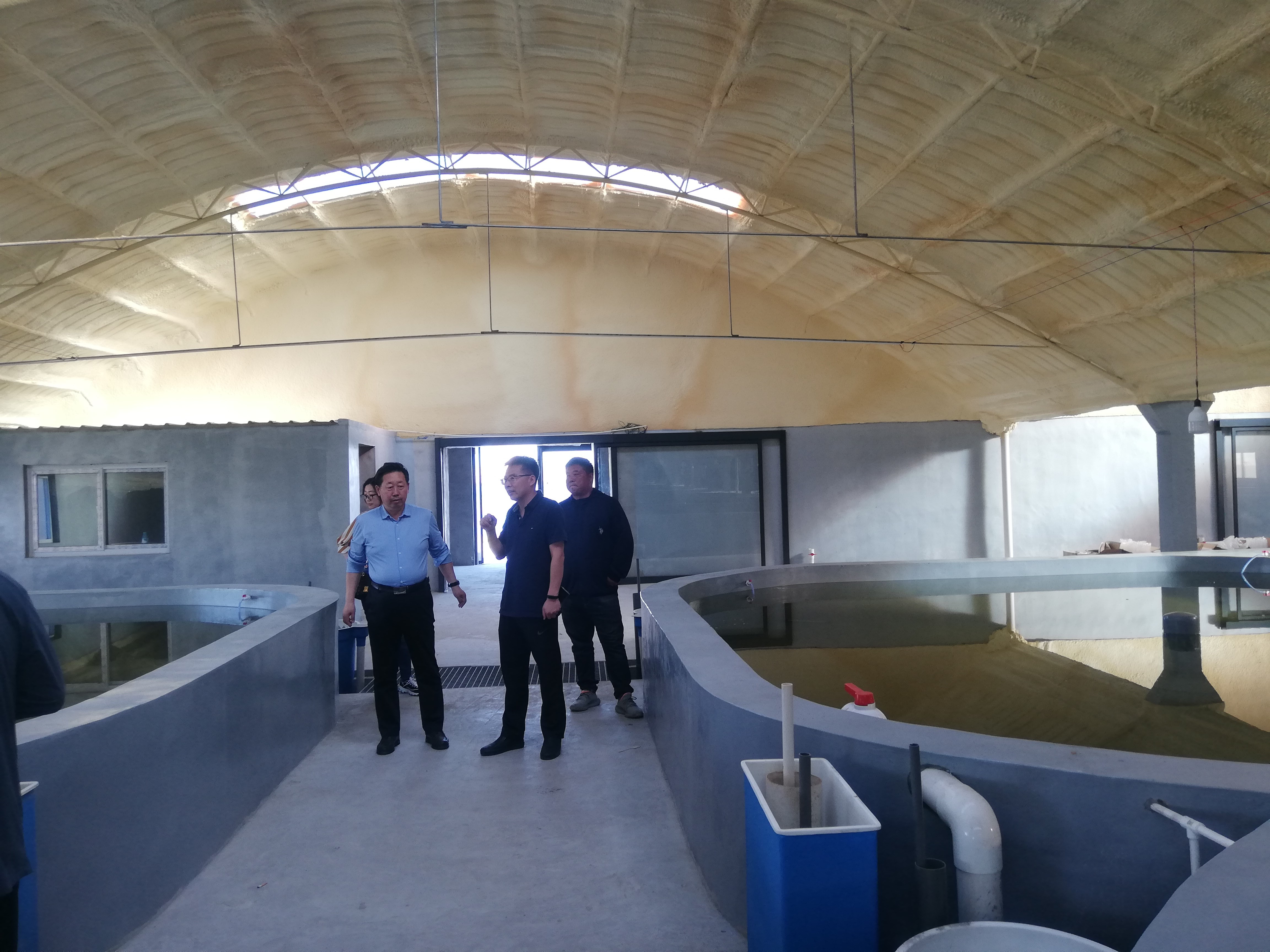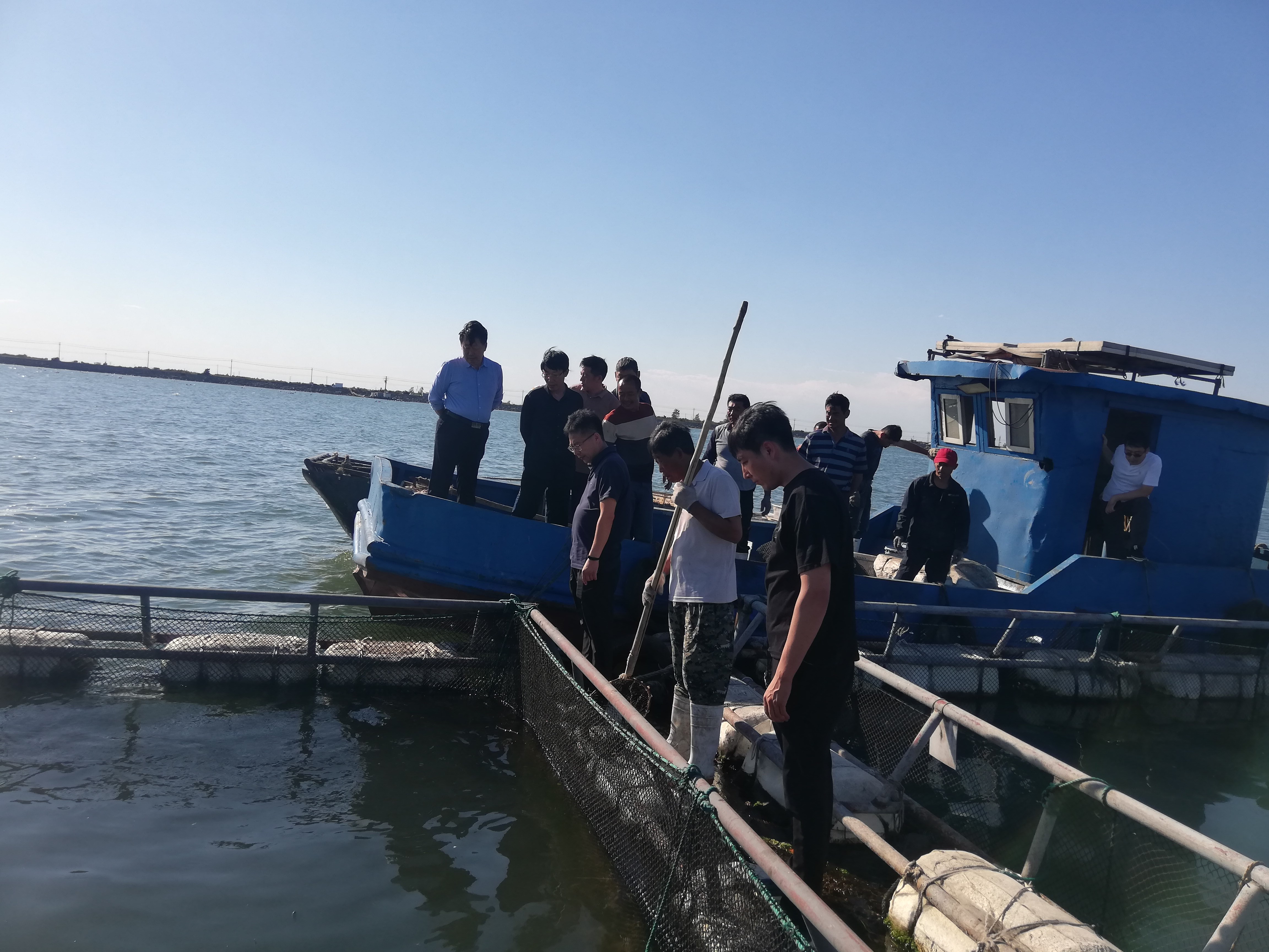6月5日-6月6日,实验室温海深教授、张美昭正高级实验师、李昀副教授、张凯强实验师前往唐山耕海水产科技有限公司(耕海公司)开展调研。本次调研主要围绕2021年度花鲈亲鱼培育工作展开,内容包括:查看海水网箱花鲈亲鱼摄食情况、工厂化循环水车间建设情况、花鲈亲鱼培育投喂方案等。耕海公司总经理李卫东全程陪同调研。 6月5日,温教授一行首先对海水网箱花鲈亲鱼摄食情况进行考察。期间,调研团队对目前培育水温、投喂鲜杂鱼种类、亲鱼摄食情况进行了查看。随后,温教授一行前往在建的工厂化循环水车间进行考察,循环水车间主要包括:养殖池、生物滤池、尾水处理池等,可用于后续花鲈苗种的室内培育。最后,温教授一行同耕海公司代表进行了座谈,针对本年度花鲈亲鱼培育工作进行了讨论。座谈会上,温教授指出,本年度需要加强花鲈亲鱼的管理工作,对花鲈亲鱼网箱进行单独管理,专人饲喂,做好投喂量记录;繁殖前两个月饲料中适当添加脂质含量较高的种类进行投喂,如鱿鱼等;根据温教授的建议,耕海公司总经理李卫东提出请温教授团队设计一份花鲈亲鱼投喂方案,本年度将严格按照投喂方案做好花鲈的亲鱼培育工作。