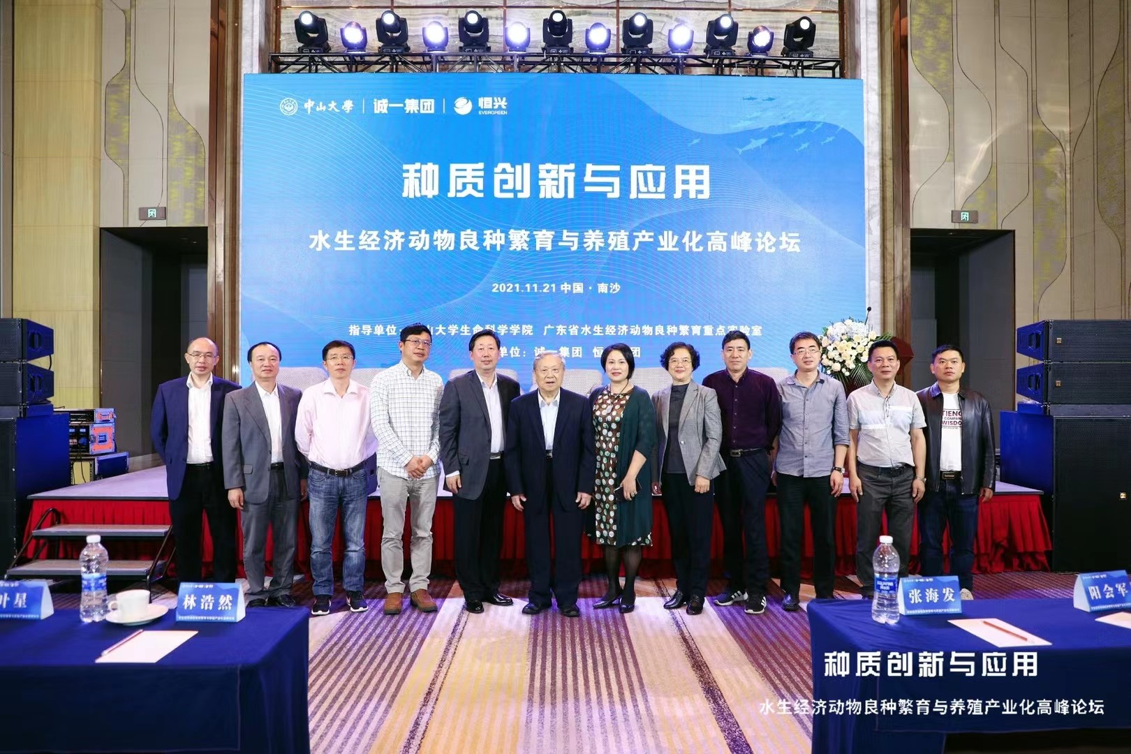 11月21日,由中山大学广东省水生经济动物良种繁育重点实验室主办,广州市诚一水产科技有限公司、广东恒兴集团有限公司主办的“水产种质创新与应用”论坛,在广州市南沙区举行。实验室温海深教授和齐鑫副教授参加会议,中山大学教授张勇担任主持,珠江水产研究所研究员叶星作大会报告《鳜鲈良种培育及相关研究汇报》,广东海洋大学教授朱春华作大会报告《南方海水种业硅谷建设设想》报告,阳江职业技术学院教授陈兴汉介绍了《疣吻沙蚕(禾虫)种业创新及综合种养产业化进展》。中国工程院院士林浩然指出:我国是世界水产养殖大国,从2008年起养殖产量一直占世界养殖总产量的60%-70%,其中优良苗种起到了巨大的推动和促进作用。大力发展水产种业,开展种质创新与应用,对于保障水产养殖业的健康可持续发展、促进渔民增收、服务国家经济发展意义深远。广东在水产种业方面的成绩斐然,是全国水产种苗研发的风向标。 海南热带海洋学院水产与生命学院副院长黄海、广东省农业技术推广中心首席专家张海发、诚一集团董事长阳会军、恒兴集团副总裁刘付永忠、御宅屋
