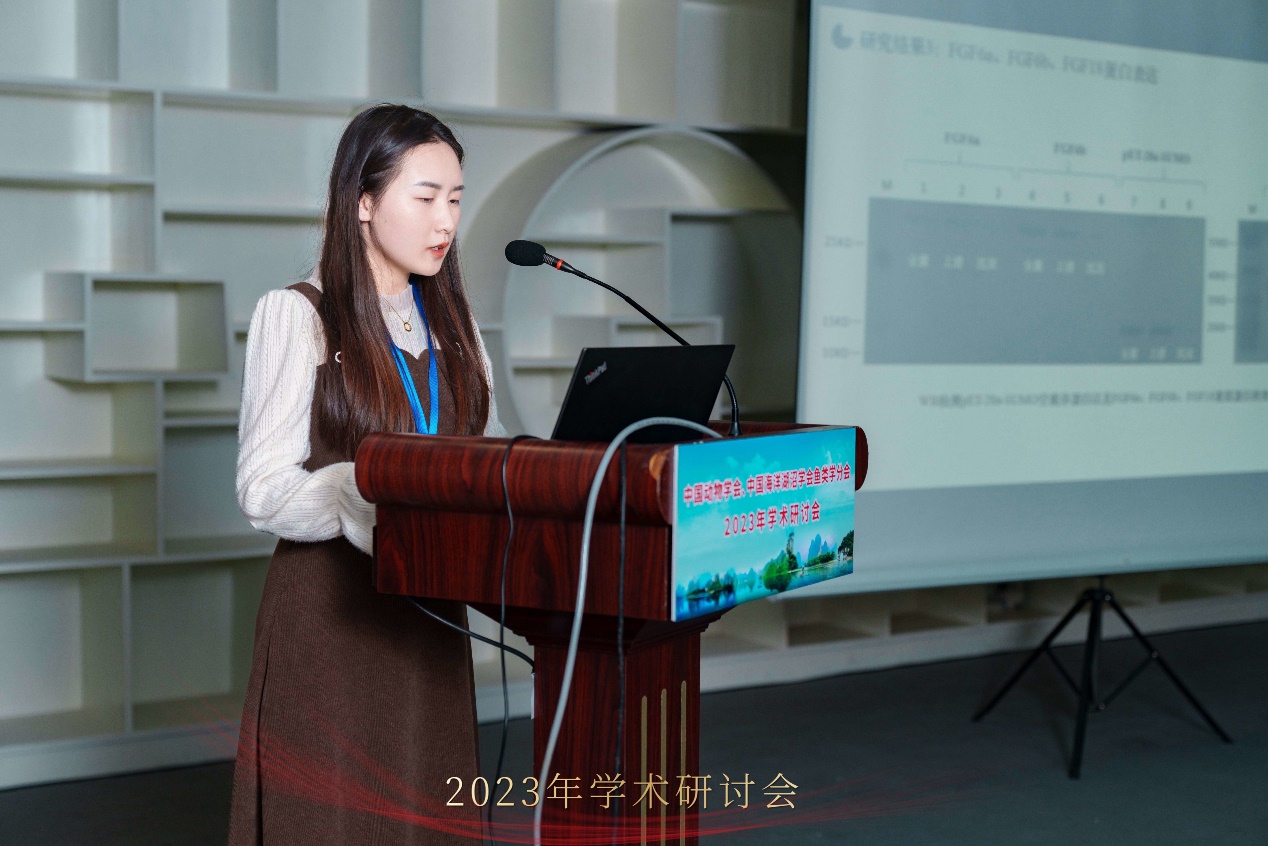 2023年12月29日至2024年1月1日,中国动物学会、中国海洋湖沼学会鱼类学分会2023年学术研讨会在广西省桂林市召开,会议由中国动物学会暨中国海洋湖沼学会鱼类学分会、广西动物学会等单位主办,桂林理工大学等单位承办。会议主题涵盖鱼类发育与遗传、鱼类分类及生态、鱼类生理、鱼类生物多样性等。大会主题报告:桂建芳院士以《鲫的遗传育种故事》为题,揭示了银鲫独特的生殖方式及其演化的遗传机制;刘少军院士以《鱼类良种良养良销》为题,倡导鱼类良种良养良销体系建立及应用;陈松林院士以《海水鱼类生物技术与种业:十年创新与发展》为题,探讨了海水鱼类的研究进展和发展前景。随后何舜平研究员、危起伟研究员、庄平研究员、徐鹏教授、高泽霞教授和吴志强教授也围绕主题进行了相关报告。本次大会展示了鱼类学研究的最新研究成果和重要进展,分享了科研经验,为青年学者的成长提供了高水平交流平台。本次会议参会人员500余名,包括国内鱼类学领军科学家、行业专家和研究生,本实验室由温海深教授带领研究生张静茹、杨晶、景潇和郭晴晴出席,并在青年研究生学术论坛中做大会报告,博士研究生张静茹、硕士研究生杨晶和硕士研究生景潇获得研究生论坛三等奖,硕士研究生郭晴晴获得研究生论坛优胜奖。