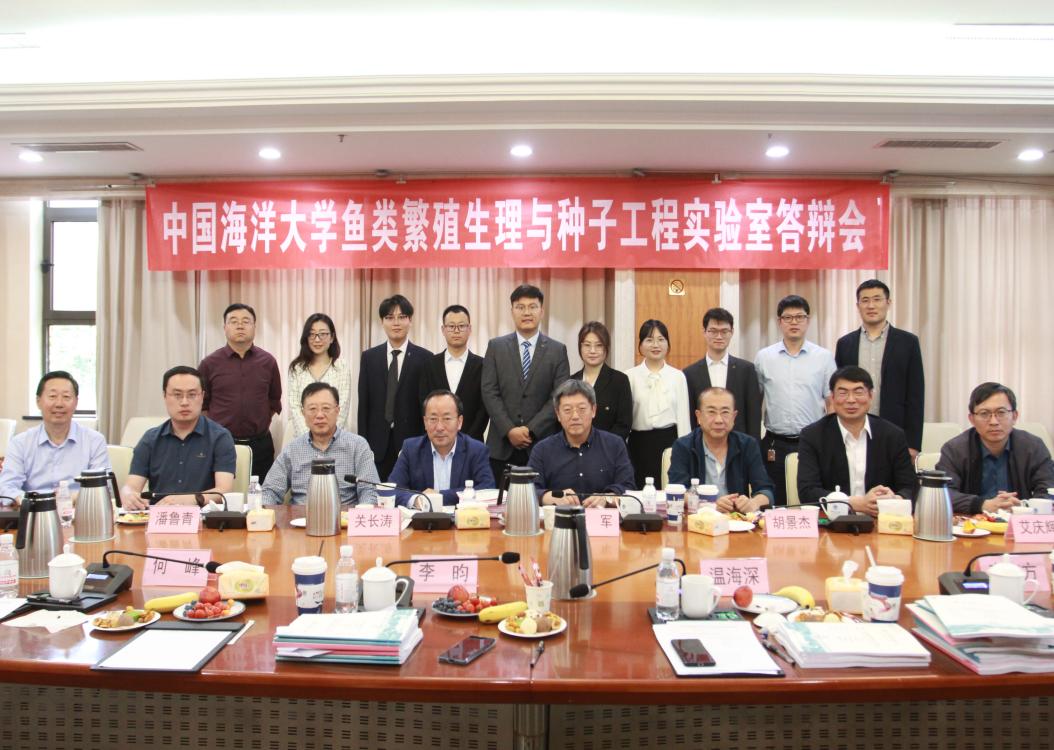 副院长高勤峰教授主持,他首先对各位专家的到来表示欢迎,并介绍答辩专家组成员,并组织答辩专家推举答辩专家委员会主席。随后,温海深教授介绍本届毕业生学习成绩和科研情况。接下来,答辩专家委员会主席李军研究员主持答辩会,答辩同学围绕毕业论文的选题背景、技术路线、结果与结论等方面进行了详细地汇报,答辩专家针对研究生的研究内容进行提问,研究生逐一解答,并认真记录修改意见。答辩结束后,经过答辩专家委员会内部讨论,一致同意授予11名研究生博士或硕士学位。 博士毕业生答辩题目: 孙冬磊—乌鳢基因组图谱构建及重要经济性状解析,导师:温海深教授 王灵钰—花鲈性别决定与性腺分化机制解析,导师:温海深教授 硕士毕业生答辩题目: 陈通—基于基因组学的花鲈渗透调节机制解析,导师:李昀教授 刘祖强—复合微生态制剂对花鲈养殖池塘水质、鱼体生长与肠道健康的影响,导师:李吉方副教授 朱明鑫—乌鳢鰤鱼诺卡氏菌抗性性状的全基因组关联分析及基因组预测,导师:李昀教授 郭晴晴—许氏平鲉性腺细胞系的建立及永生化的可行性研究,导师:温海深教授 陈治锦—花鲈的雌核发育与种质鉴定技术研究,导师:李昀教授 王浩—牙鲆肌肉发育相关circRNAs筛选、鉴定及调控机制研究,导师:何峰副教授 姜天宇—催乳素调控乌鳢繁殖行为发生的研究,导师:齐鑫教授 杨如涛—多组学联合解析花鲈脑对温度的分子响应机制,导师:李昀教授 王旭蕾—鞍带石斑鱼生长相关微卫星筛选与鉴定,导师:齐鑫教授。