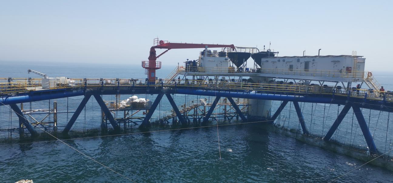 参与人员参观经海001号深水智能网箱(虹鳟养殖)