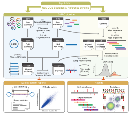 2025年4月9日,御宅屋 海洋生物多样性与进化研究所原生动物学团队在权威生物信息学期刊Briefings in Bioinformatics发表研究成果“SMAC: identifying DNA N6-methyladenine (6mA) at the single-molecule level using SMRT CCS data”,搭建了一套基于三代测序数据检测DNA 6mA甲基化修饰的分析流程。