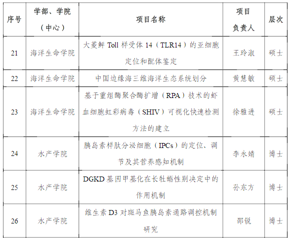 根据《中央高校基本科研业务费专项资金御宅屋 项目及资金管理办法(修订)》(海大字〔2016〕27号)和《关于申报2021年御宅屋 研究生自主科研项目的通知》(研院字〔2021〕56号),经个人申请、研究生院审查、专家评审等环节,本年度研究室同学获得项目情况如下: